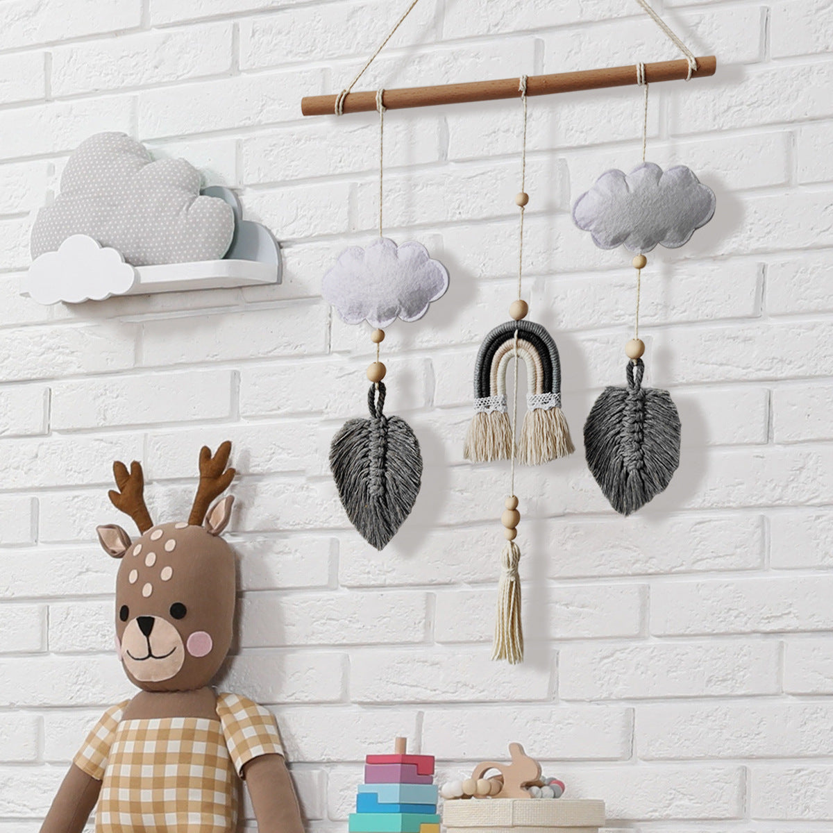 Wholesale Wood Cloud Rainbow Leaves Wall Hanging