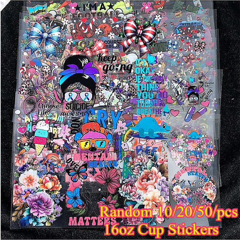 Wholesale 16oz Steel Cup UV DTF Stickers Random 10pcs/20pcs/50pcs Wraps for DIY Craftlaser wraps