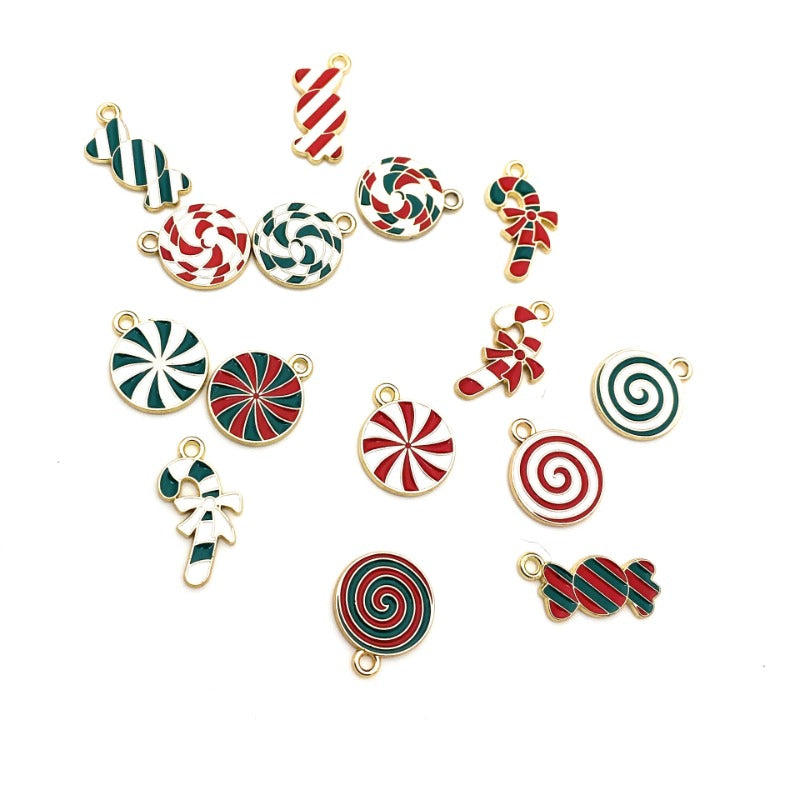 Wholesale 10pcs Christmas Candy Cane Lollipop Pendant Alloy Oil Drip Diy Pendant