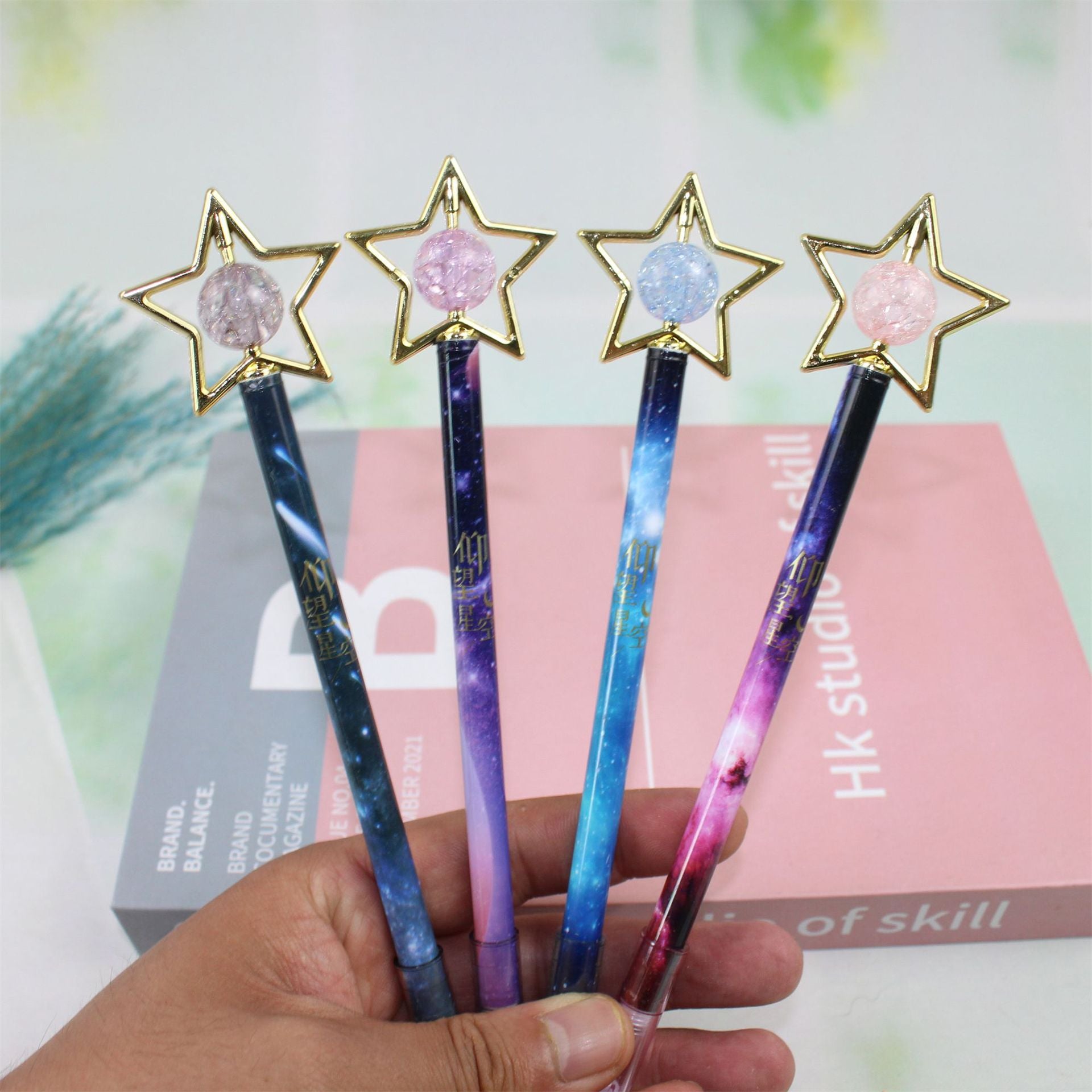 Wholesale 12PCS Creative Five-pointed Star Electroplated Rotatable Beads Plastic Gel Pen