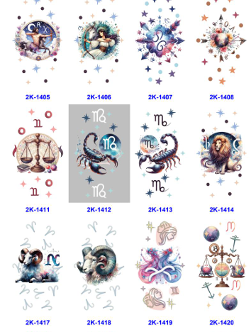 Wholesale 15pcs Twelve Zodiac Signs Colorful Motel Keychain Stickers
