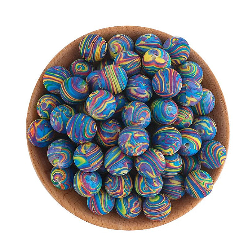Wholesale 50pcs 15mm Water Transfer Pattern Silicone Beads