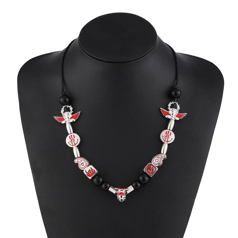 Venta al por mayor aleación Smiley Skull Angel collar de perlas negras