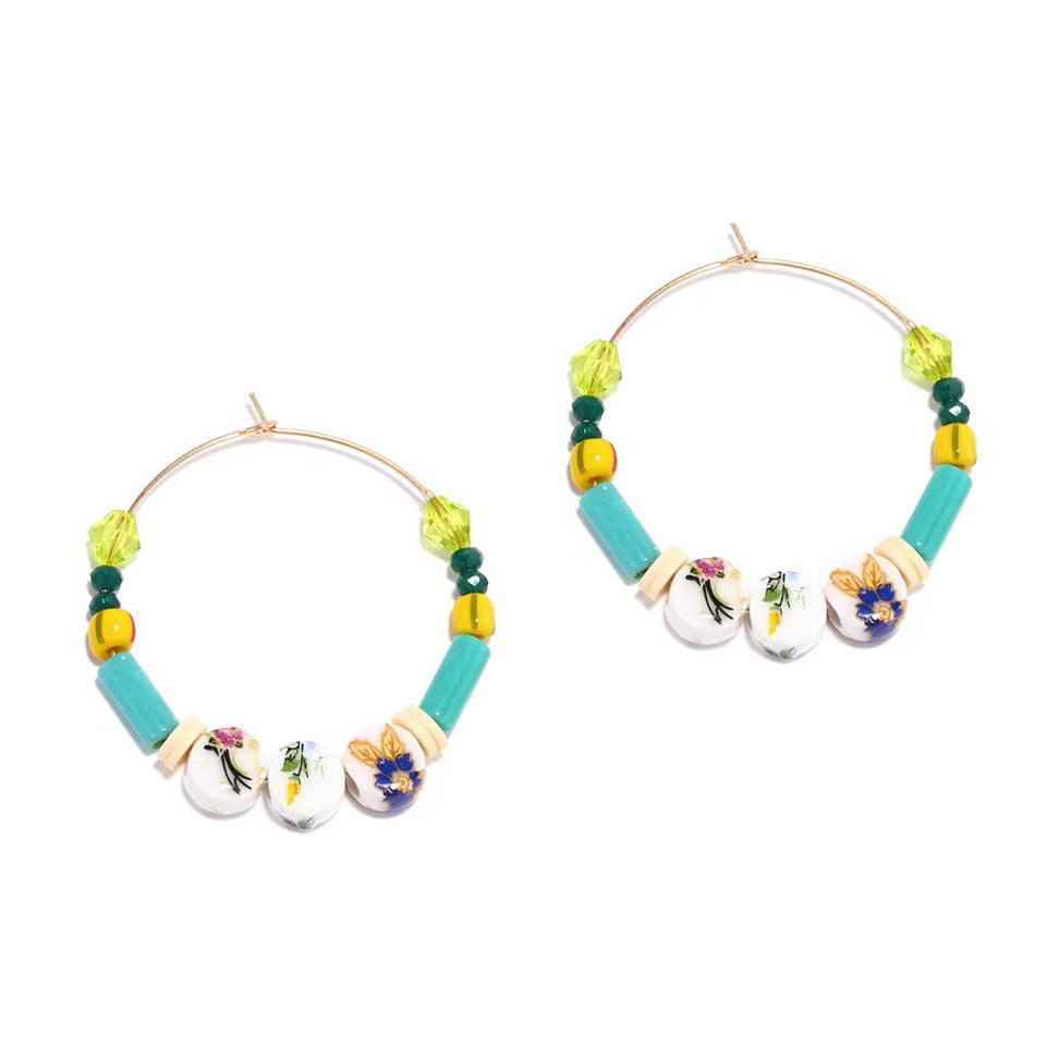 Wholesale Boho Handmade Beaded Rice Beads Crystal Earrings
