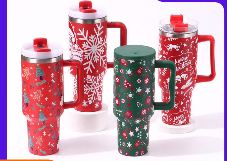 Wholesale Christmas 5D 1200ml large capacity stainless steel car cup with handle