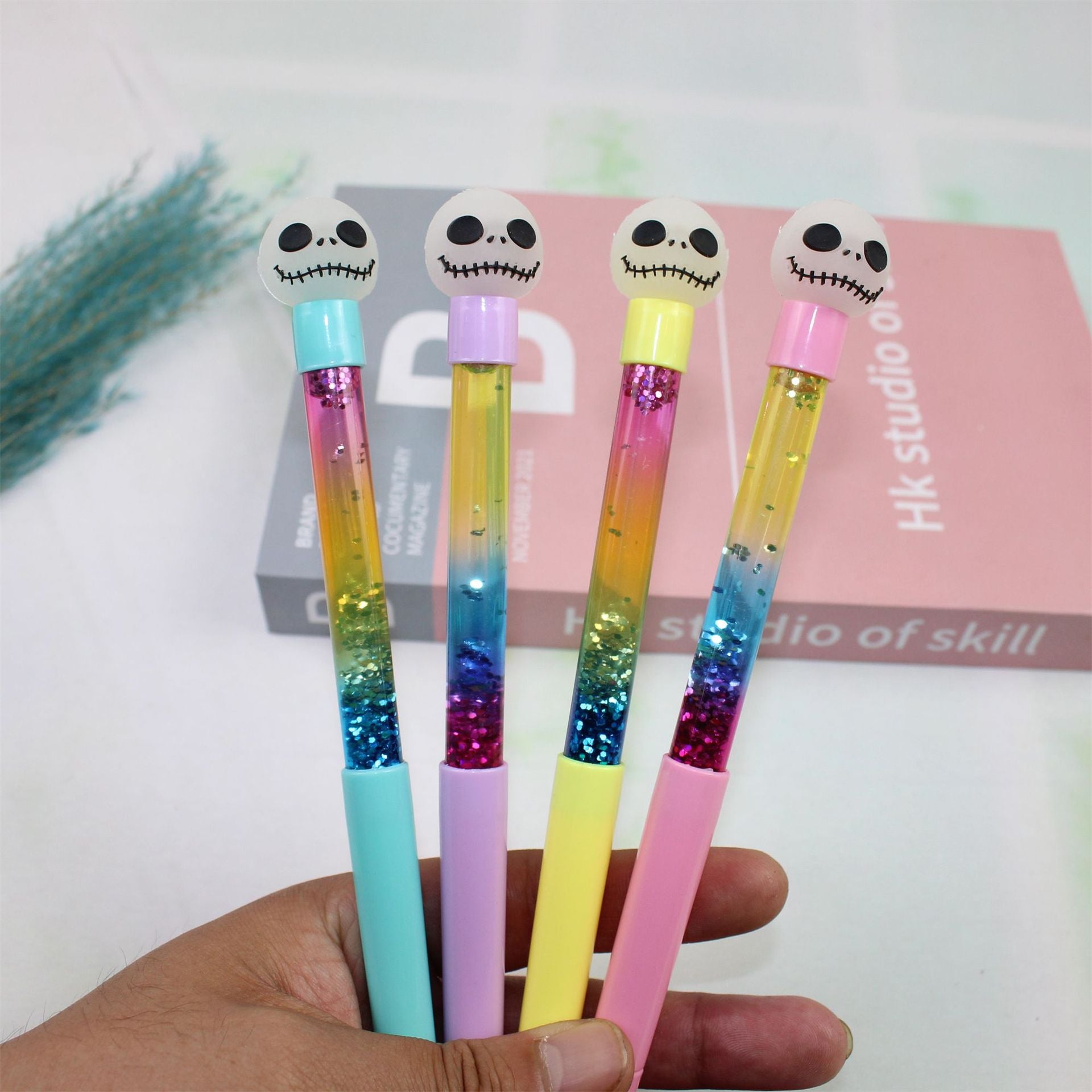 Wholesale 12pcs Creative Skull with Luminous Soft Glue Colorful Quicksand Plastic Gel Pen