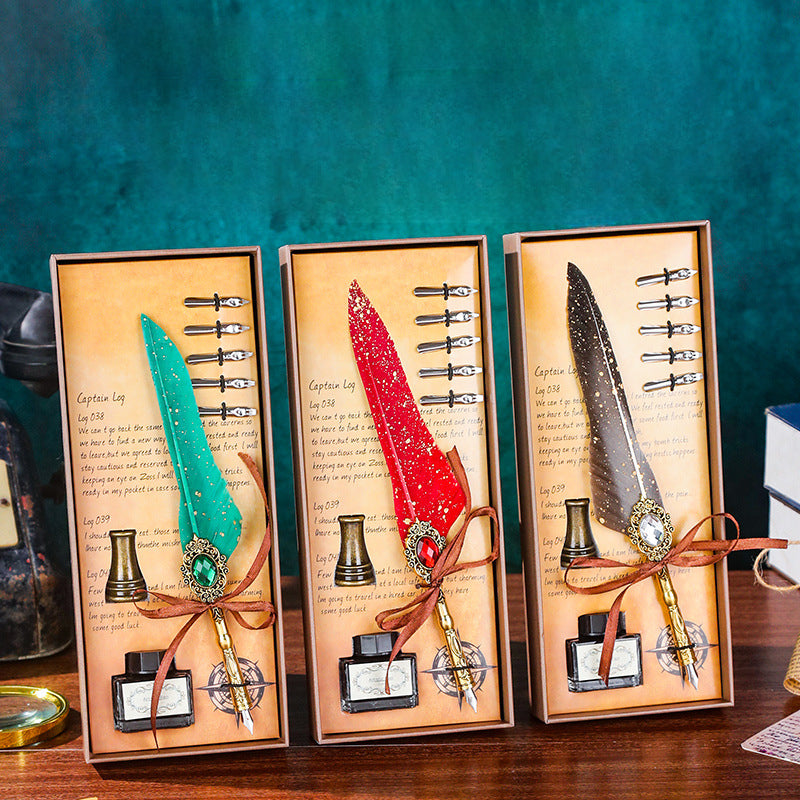 Wholesale Dip Pen Retro Spilled Gold Feather Pen Set Gift Box Gift