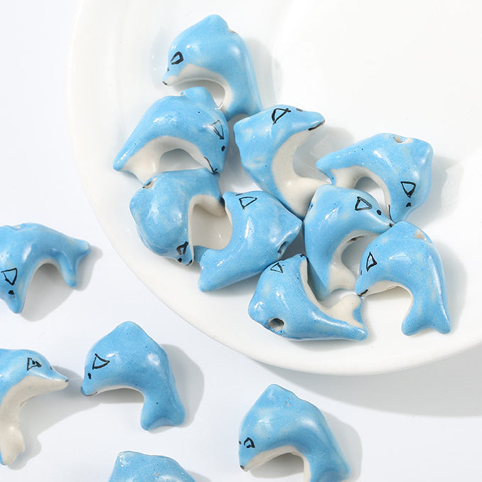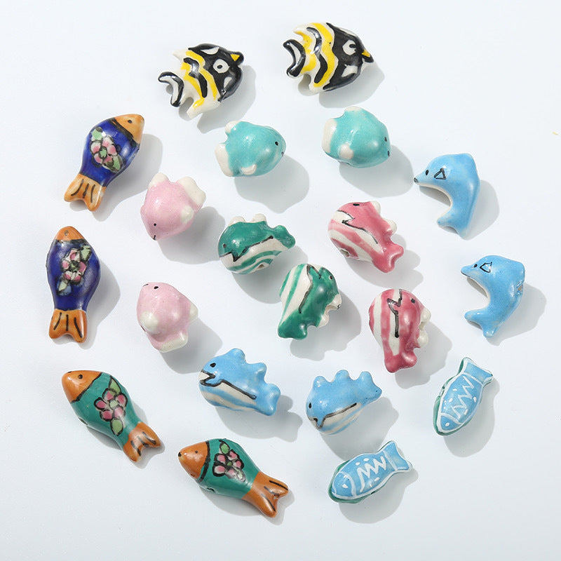 Wholesale 10pcs Vintage Hand-painted Colorful Goldfish Dolphin Ceramic Beads