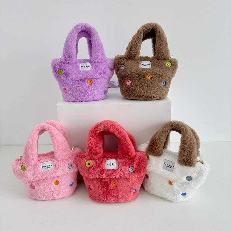 Wholesale Colored Plush Bags Bucket Bags Children's Crossbody Bags