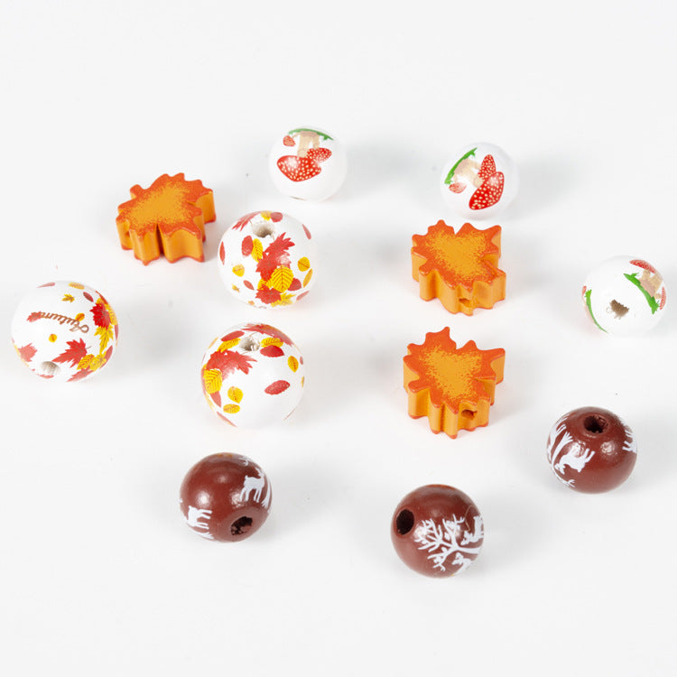 Cuentas de madera de colores de otoño al por mayor 10pcs