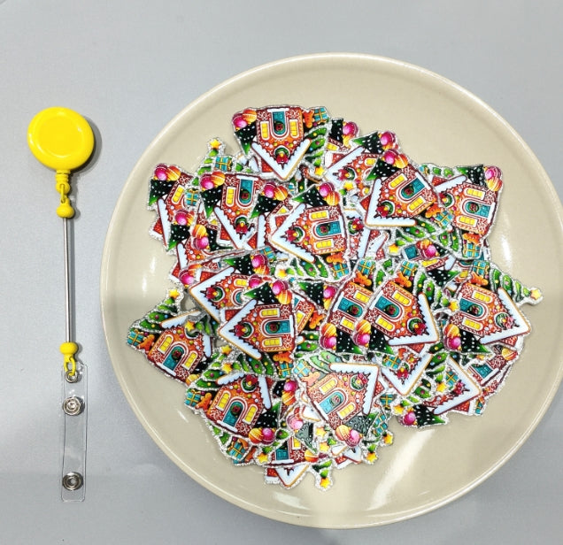 Wholesale 10pcs/Pack Christmas House DIY Acrylic Flatbacks for Badge Reels Keychains