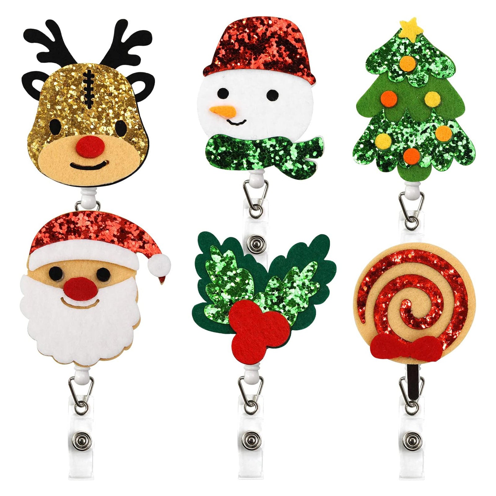 Wholesale Christmas Felt Cloth Santa Claus, Snowman Trees, Elk Badges, Scroll Extendable Keychains