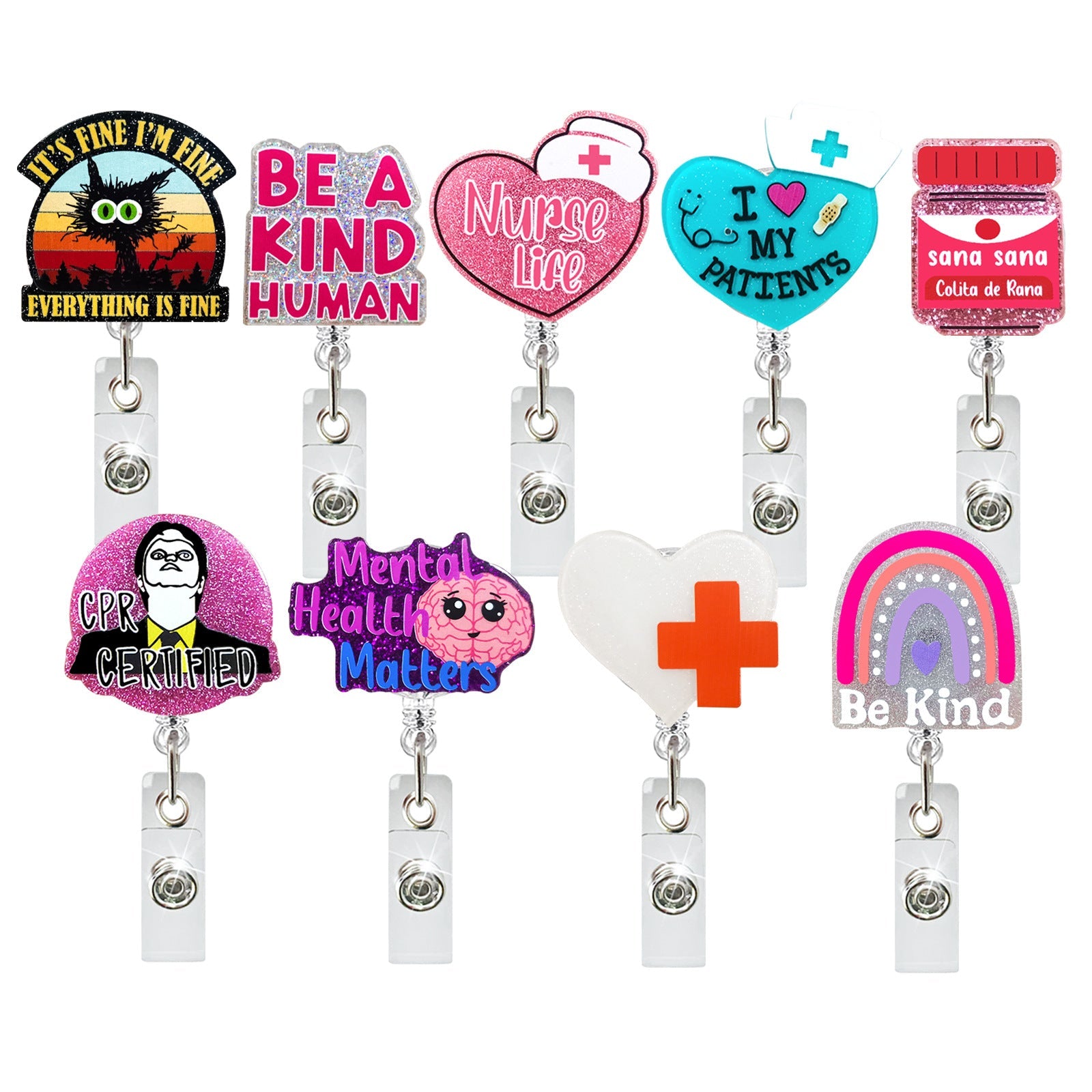 Wholesale Badge Reels Glitter Love Rainbow Medicine Bottle Badge Scroll ABS Retractable Keychain