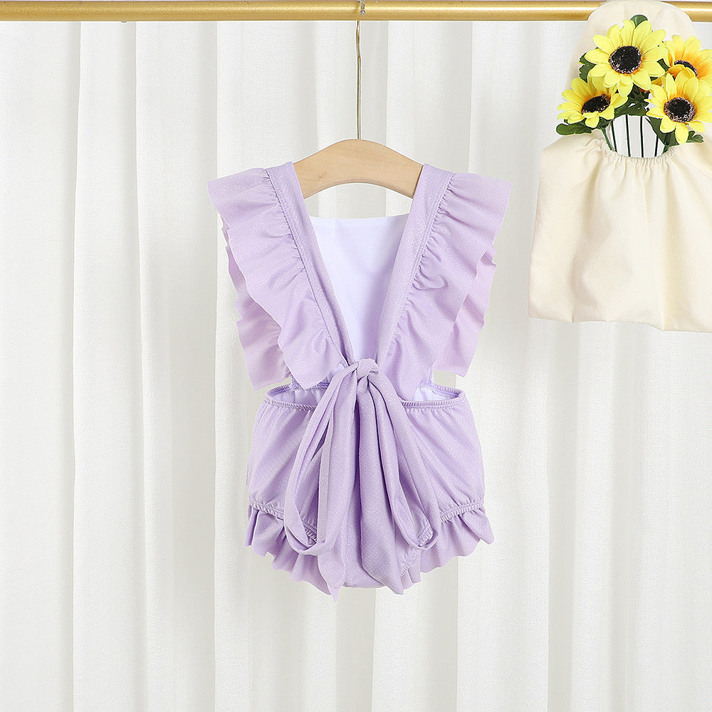 Venta al por mayor de poliéster de una pieza de color sólido para niños traje de baño