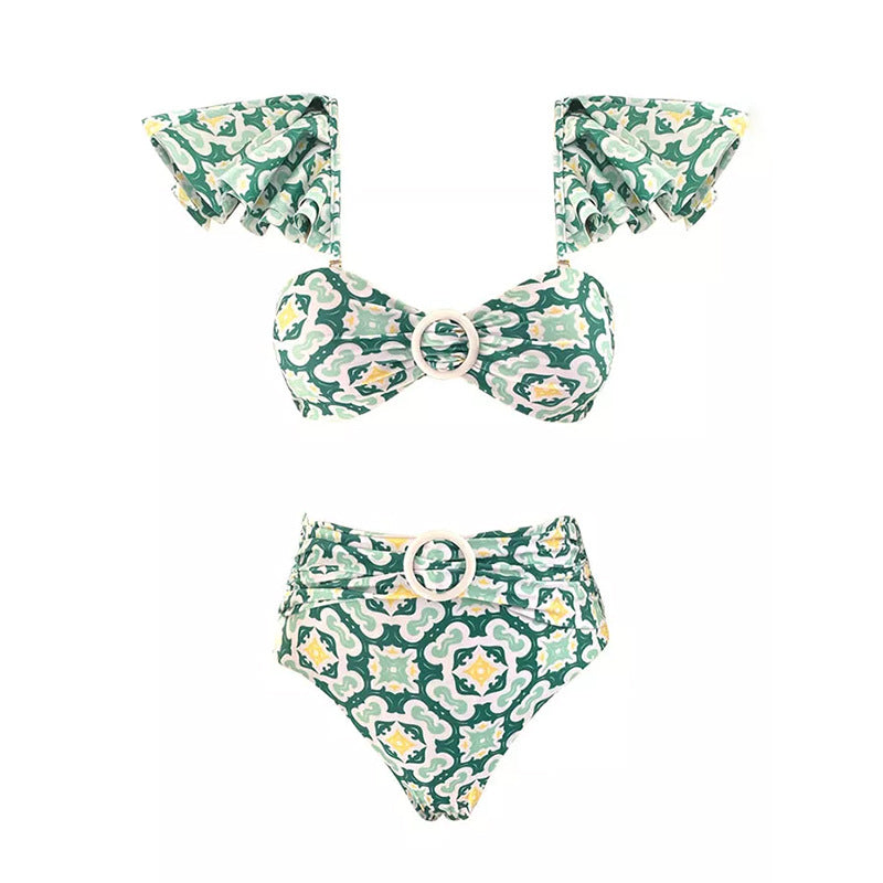 Venta al por mayor 2023 nuevos trajes de baño de poliéster estampado de cintura alta