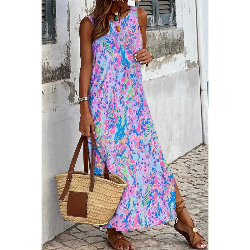 Wholesale Printed Sleeveless Round Neck Pullover Ankle Length Maxi Dress