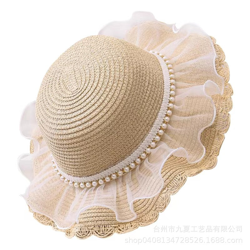Venta al por mayor de paja tejida para padres e hijos, sombrilla de ala grande, protector solar, sombrero de paja