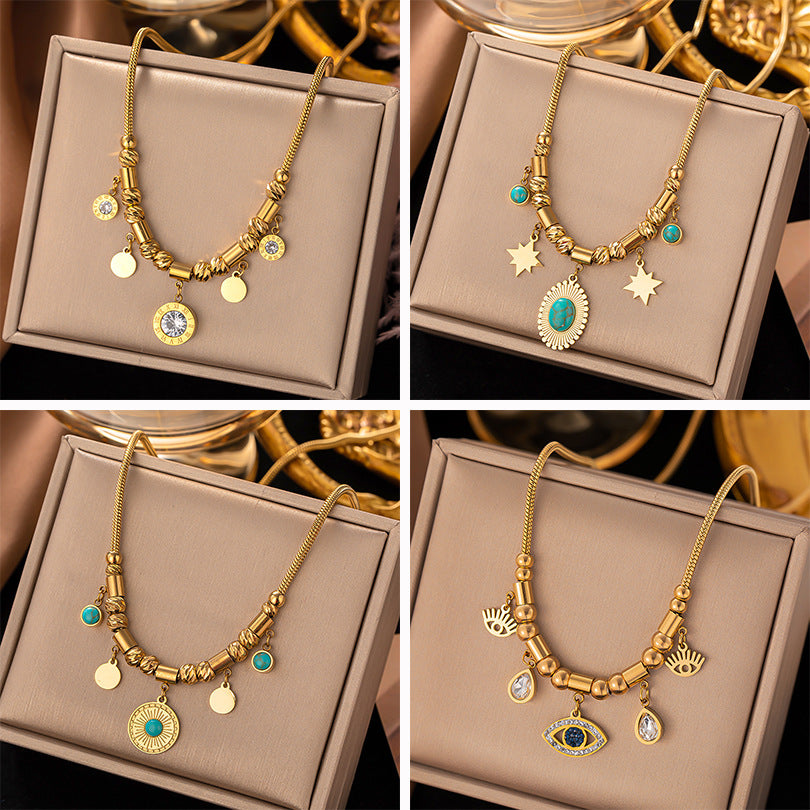 Collar con colgante de piedra romana dorada de 18 quilates de acero titanio al por mayor