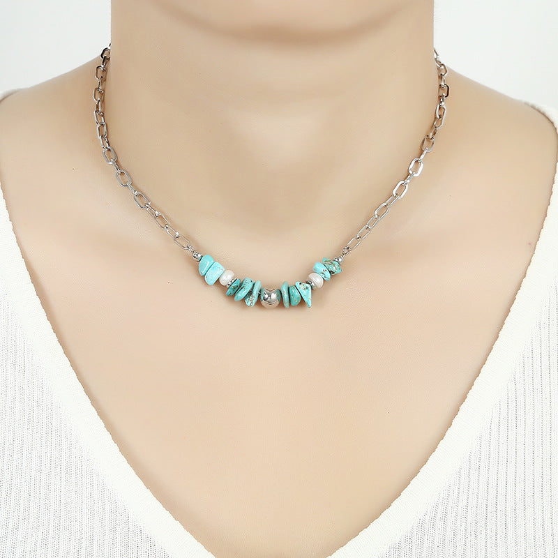 Wholesale of Pine Stone Orchid Red Stone, Freshwater Pearl Clavicle Stainless Steel Necklace