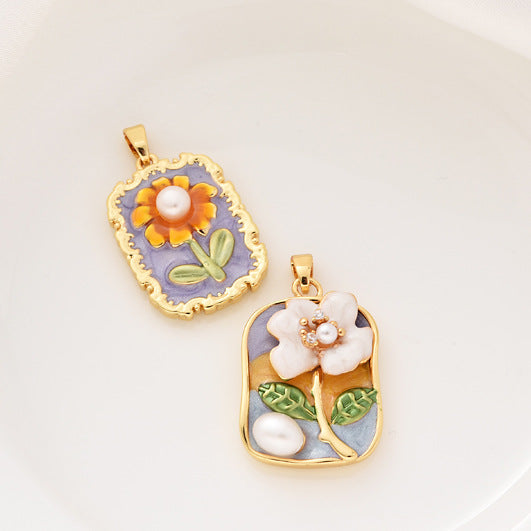Wholesale Pearl Necklace Melon Buckle Pendant Oil Dropping Oil Painting Style Rose DIY Pearl Necklace Sweater Chain Accessories New