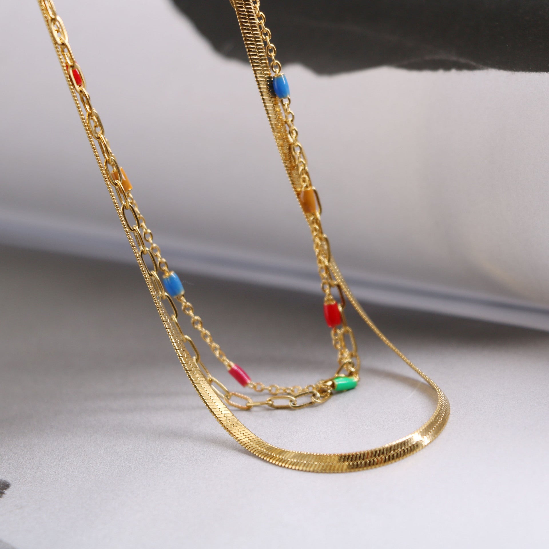 Collares de múltiples capas de elementos de color de acero de acero titanio al por mayor