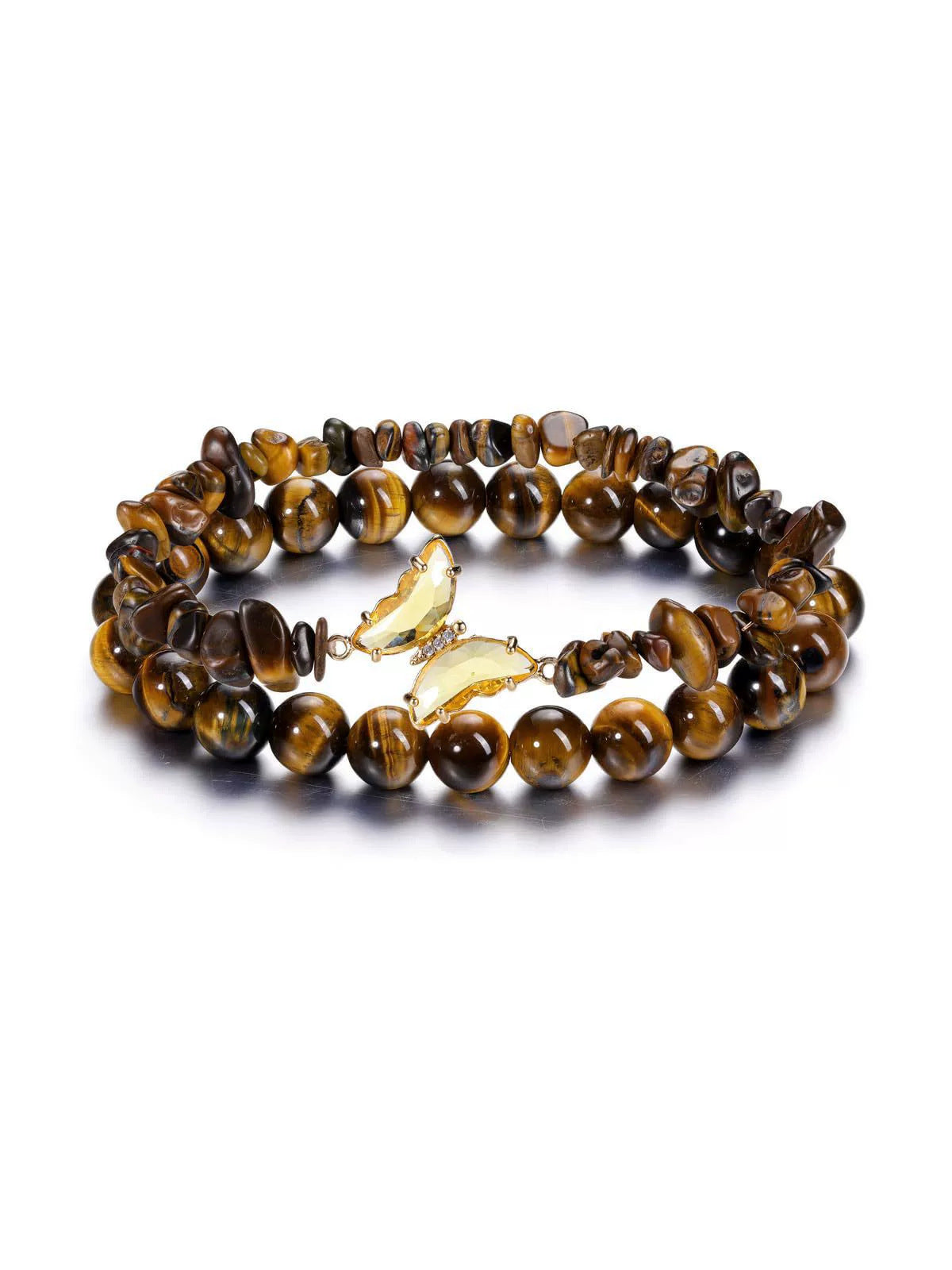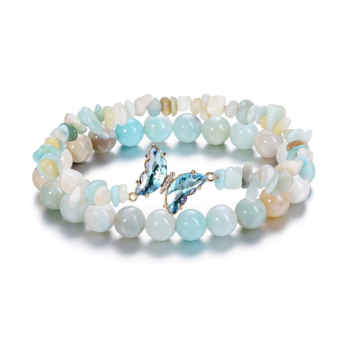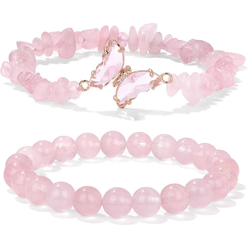 Wholesale Natural Stone Amethyst Butterfly Pendant Layered Bracelet Set