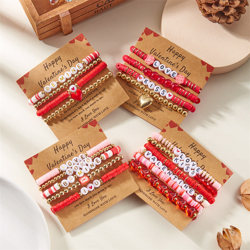 Wholesale Pink Love Valentine' s Day Layered Bracelet Set