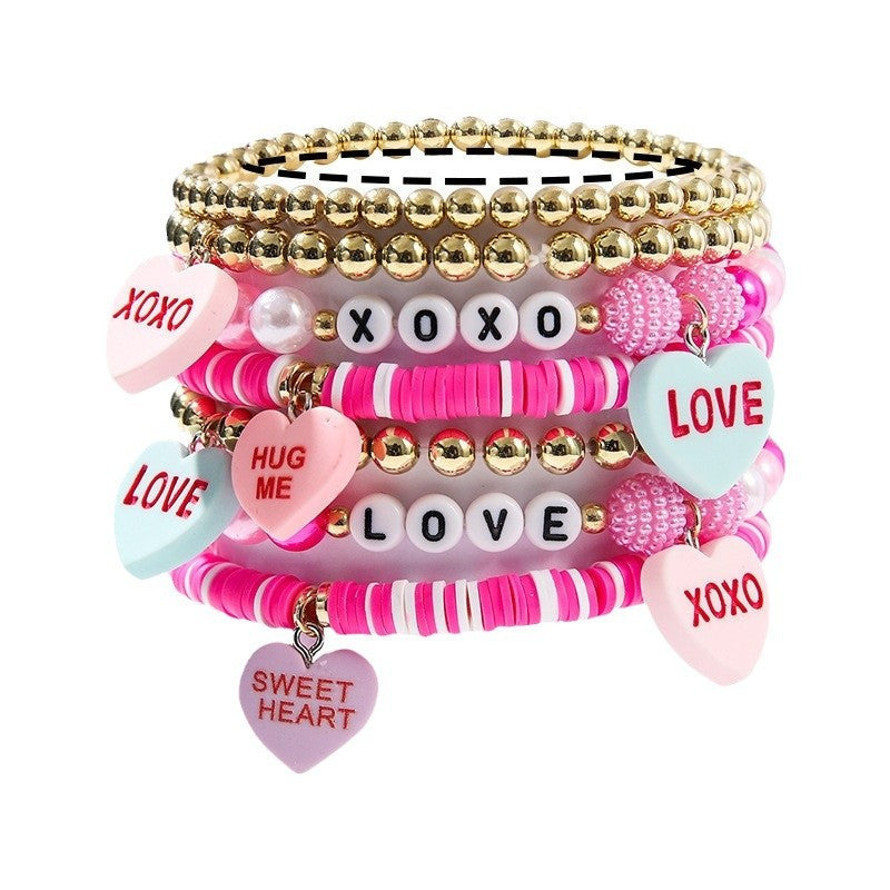 Wholesale Valentine' s Day Love Tab Soft y Letter Beaded Pink Clay Bead Bracelet
