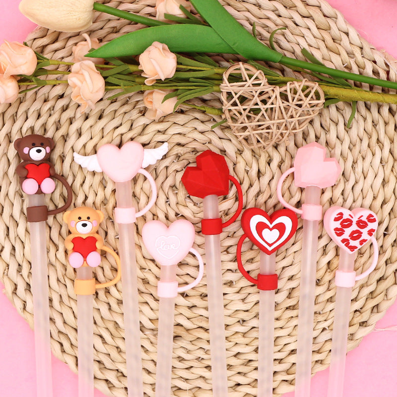 Wholesale 10pcs Cartoon Silicone Dustproof 8/10mm Straw Cover