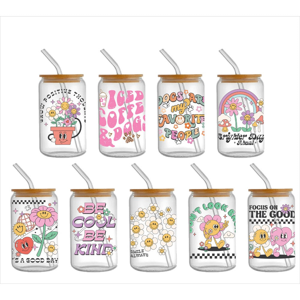 Wholesale Cute Smiley Flower Series Printing UV DTF Transfer Crystal Cup Sticker