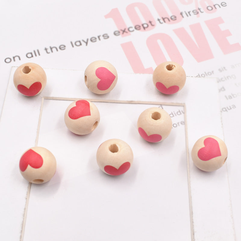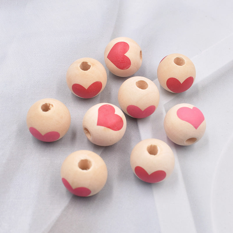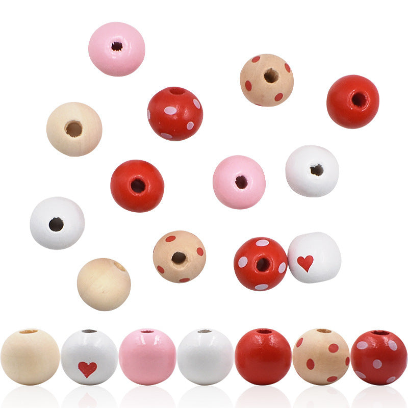Wholesale 10PCS diy16mm Valentine's Day Love Color Wooden Beads