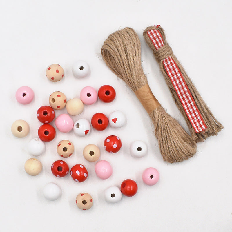 Wholesale 20PCS DIY Valentine's Day Love Color Tassels Twine Wooden Beads