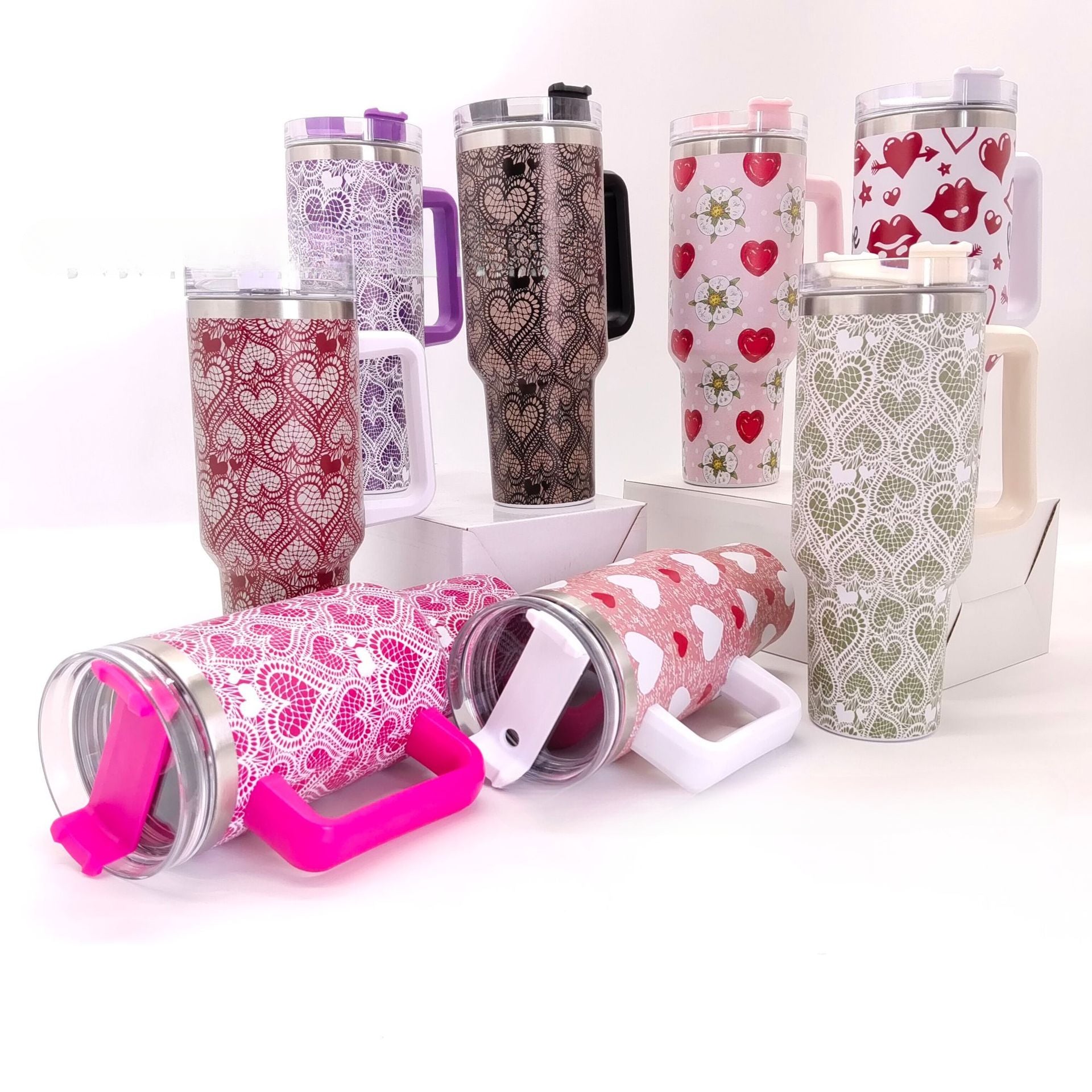 Wholesale Valentine's Day Three Color Love Leopard Pattern Silicone Focal Beads