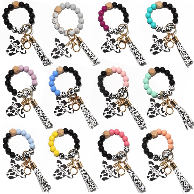 Cuentas de silicona impresas de vaca al por mayor 10pcs