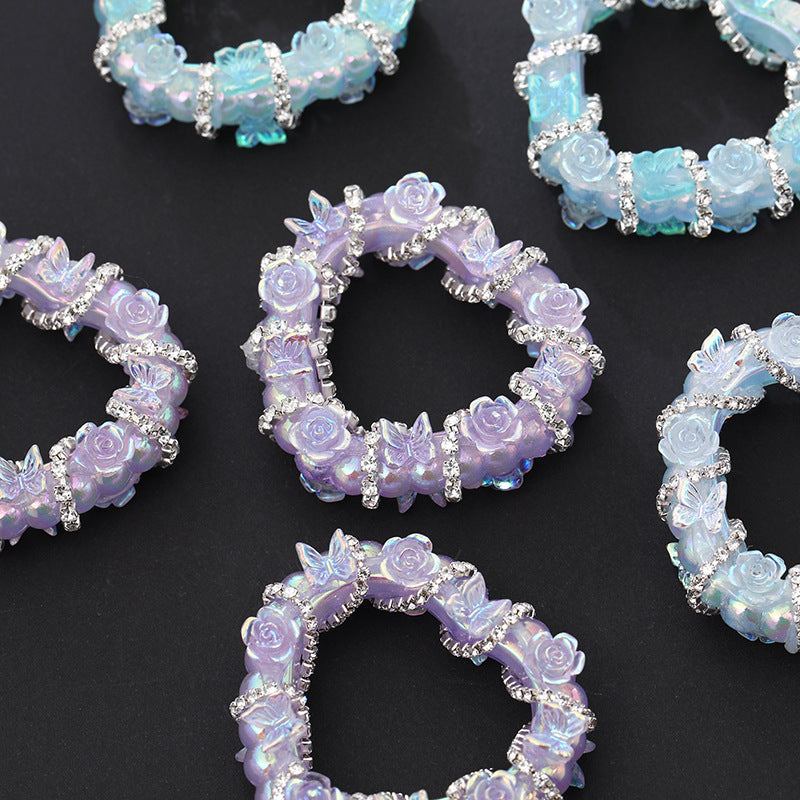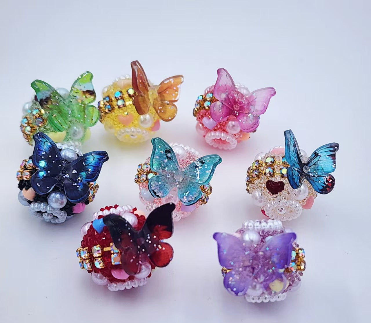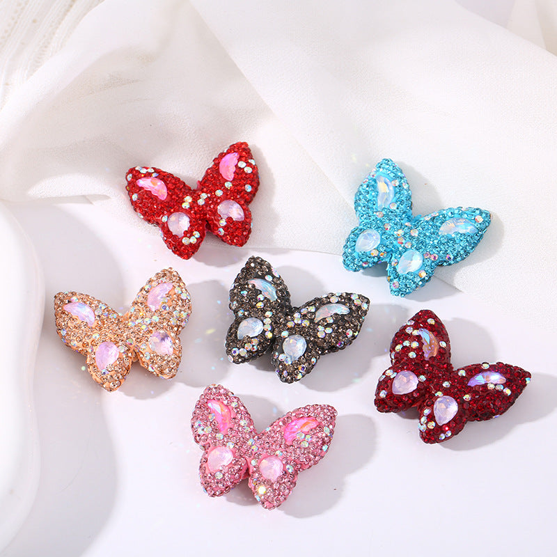 Wholesale of Colored Soft Clay Double-sided Diamond Inlaid Butterfly Straight Hole Beads