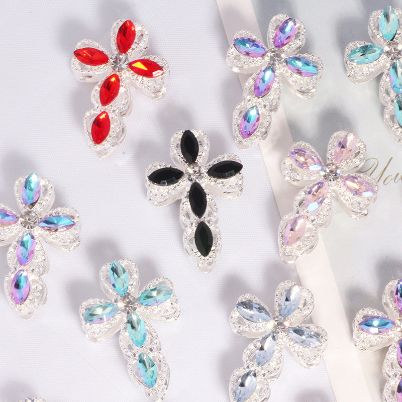 Wholesale 3D Smiley Flower Full Diamond Crystal Ball Straight Hole Beads DIY Accessories