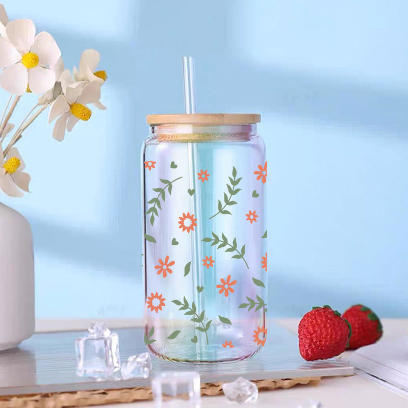 Wholesale Green Branches Leaves Flowers Branches 16oz Cup UV DTF Wraps