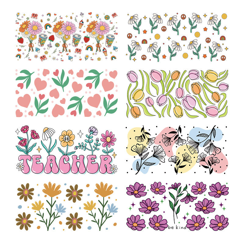 Wholesale Colorful Flowers Teacher's Day 16oz Cup UV DTF Wraps