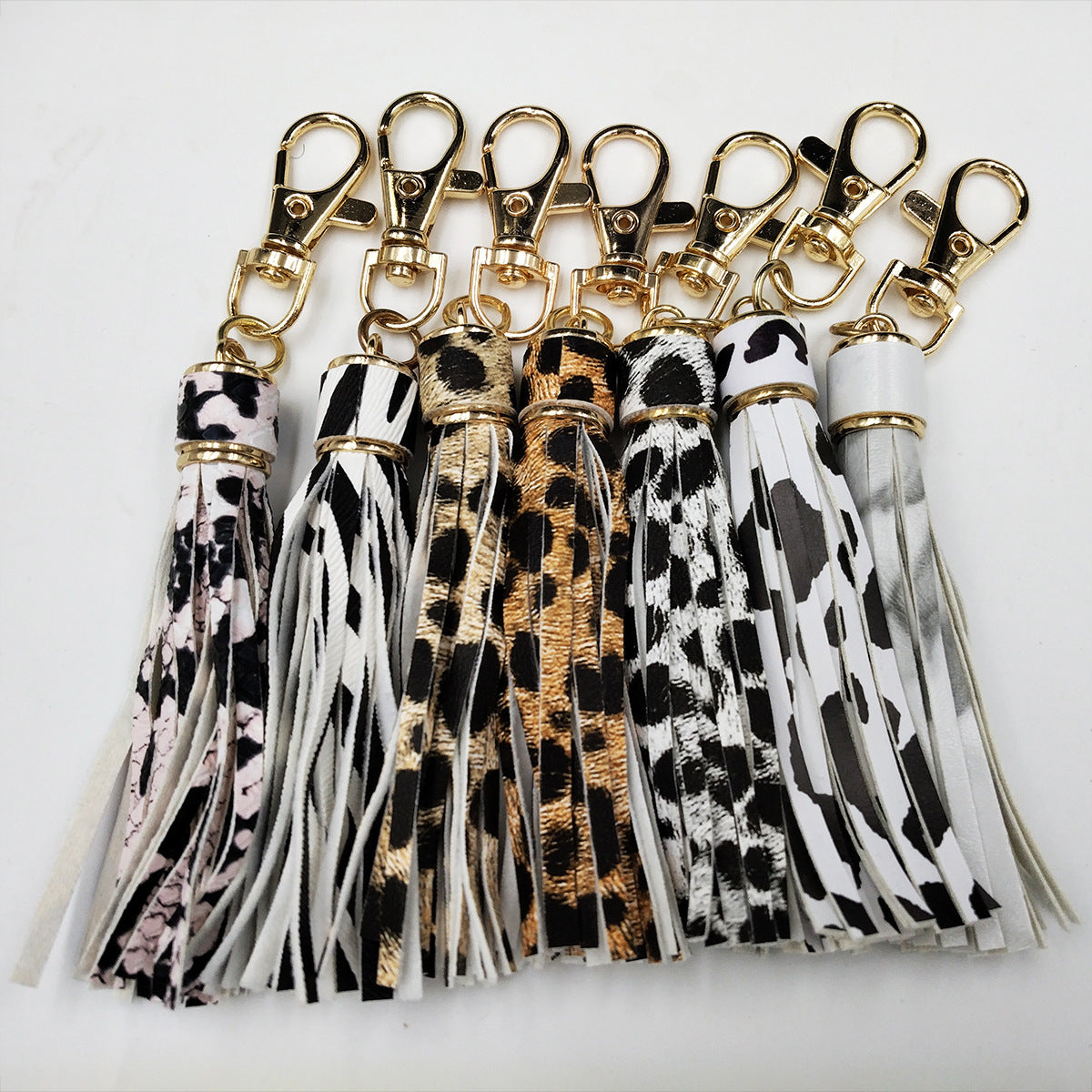 Llavero al por mayor de la borla del cuero del modelo de la vaca del leopardo de la PU