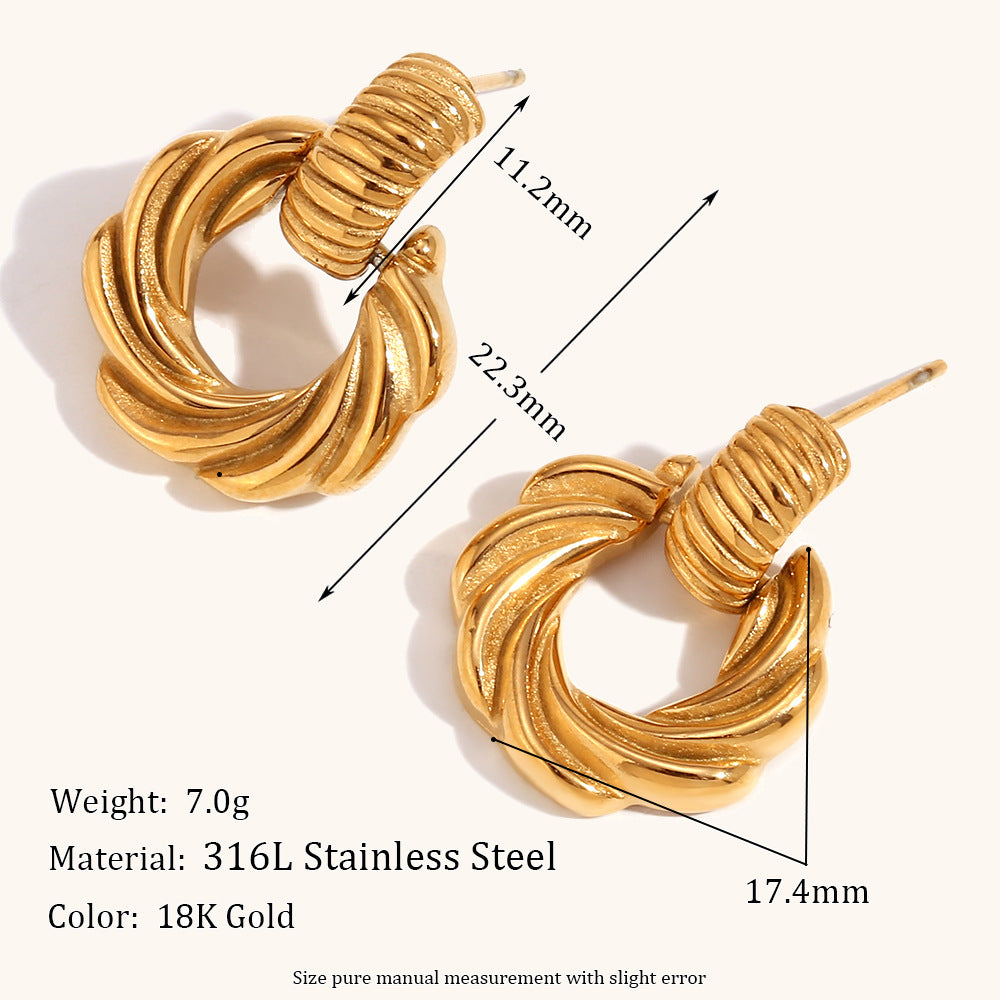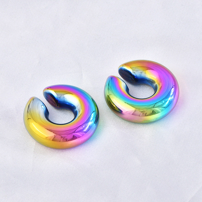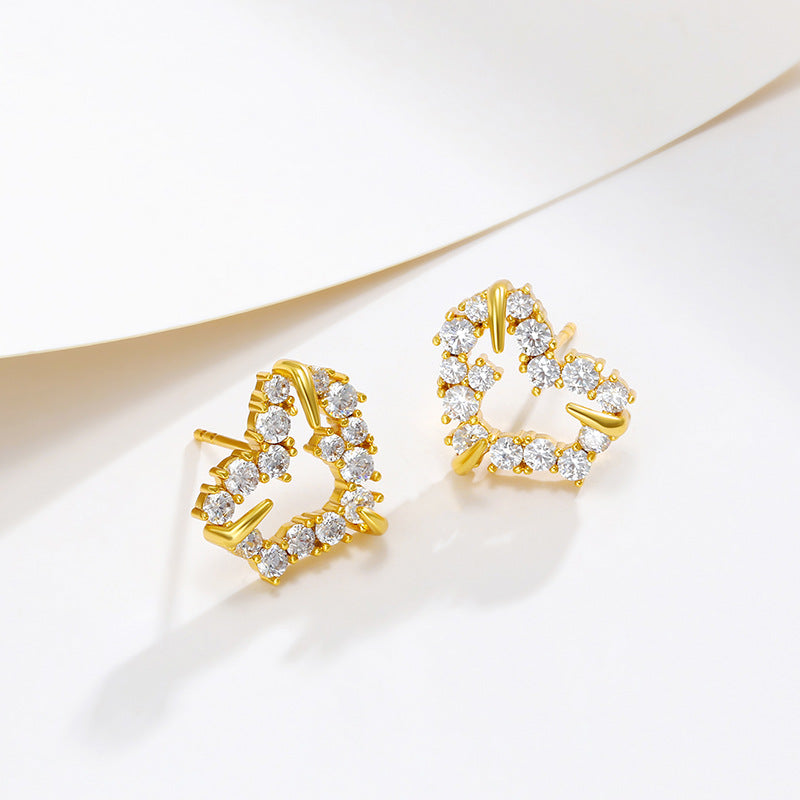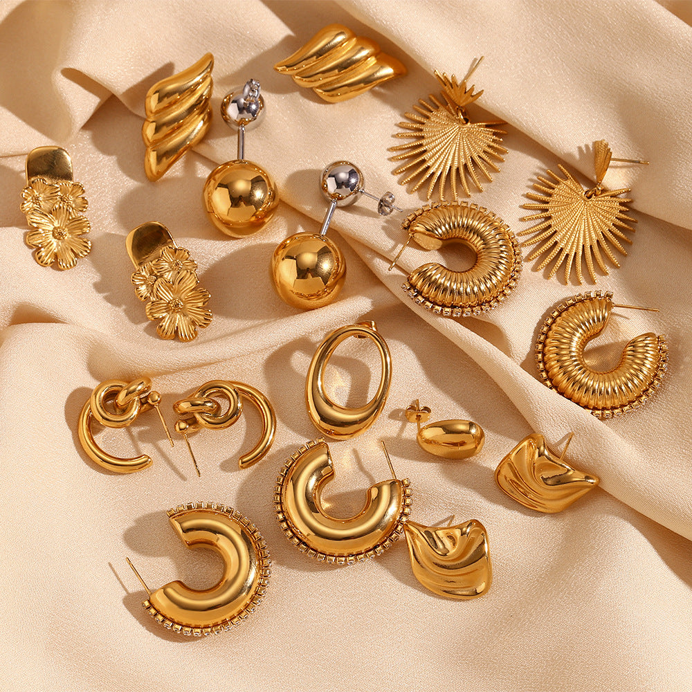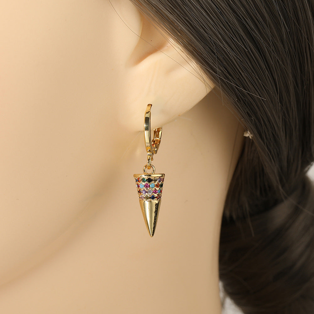 Wholesale Colored Zircon Stainless Steel Gold Plated C Shape Earrings