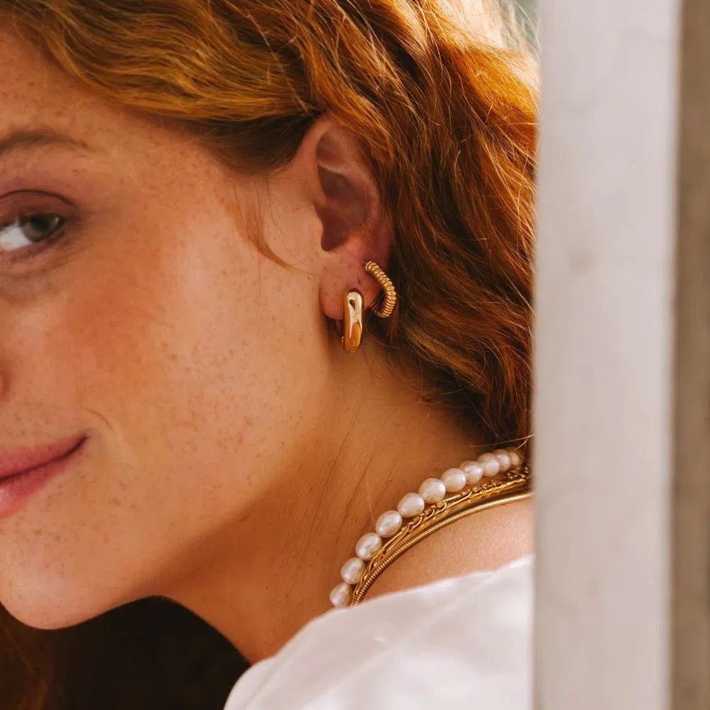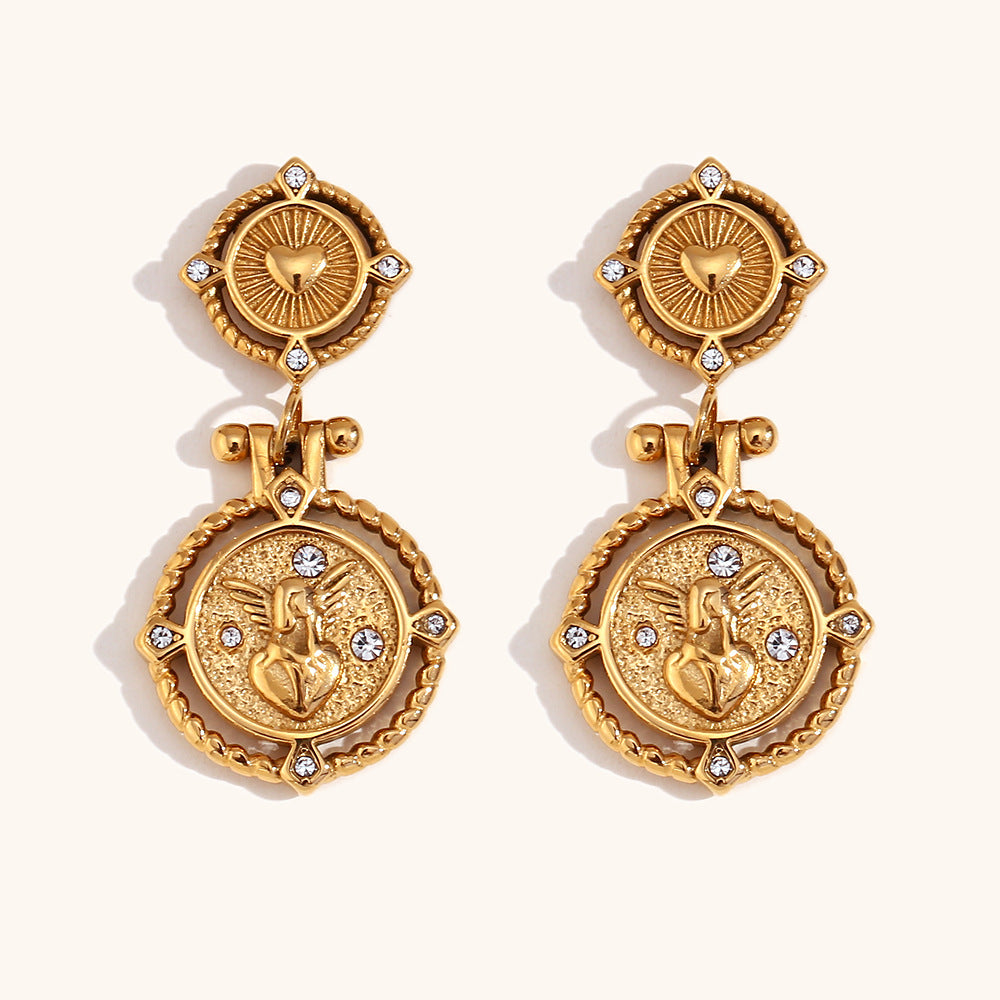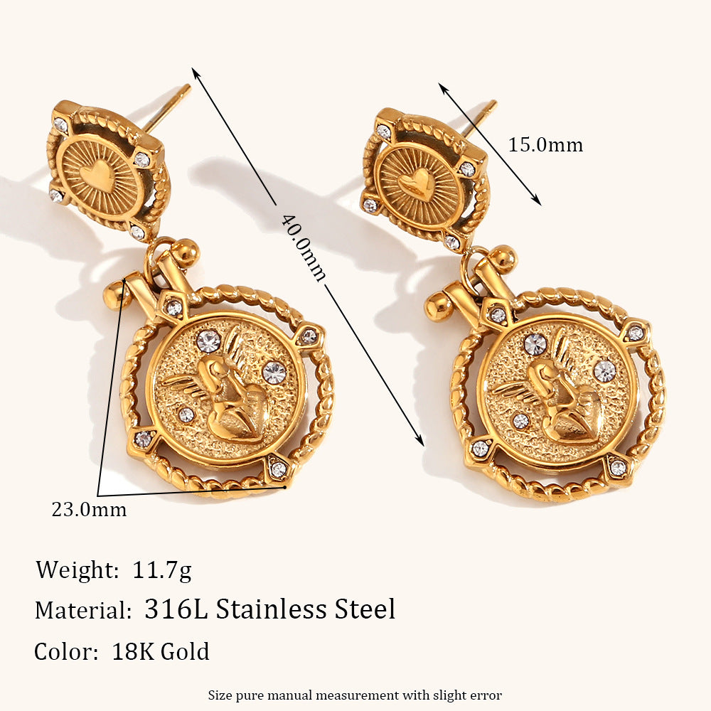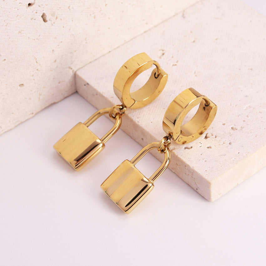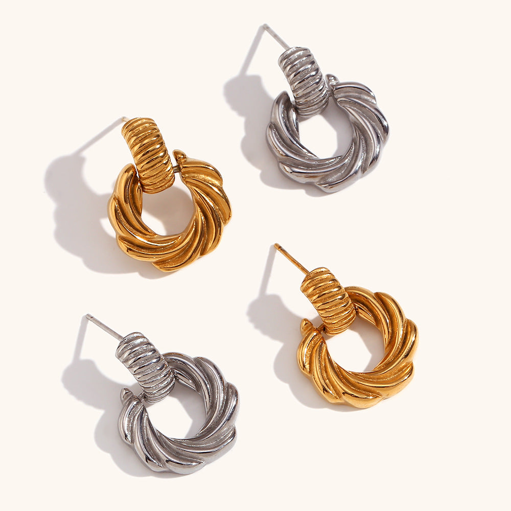 Wholesale Colored Zircon Stainless Steel Gold Plated C Shape Earrings