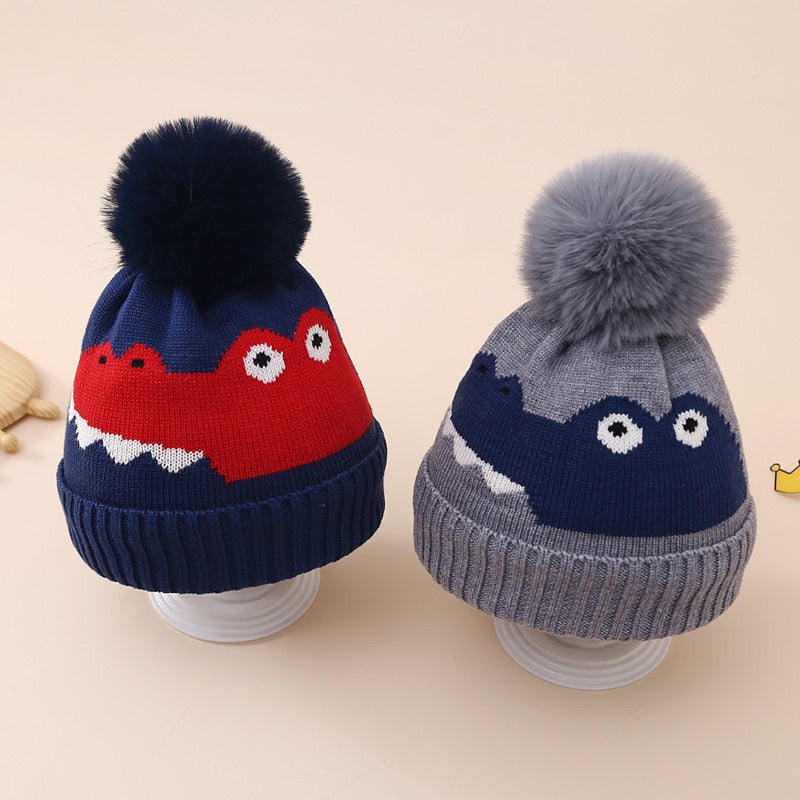 Wholesale Children's Dinosaur Knitted Hat Plus Velvet and Thickened Cartoon Woolen Hat