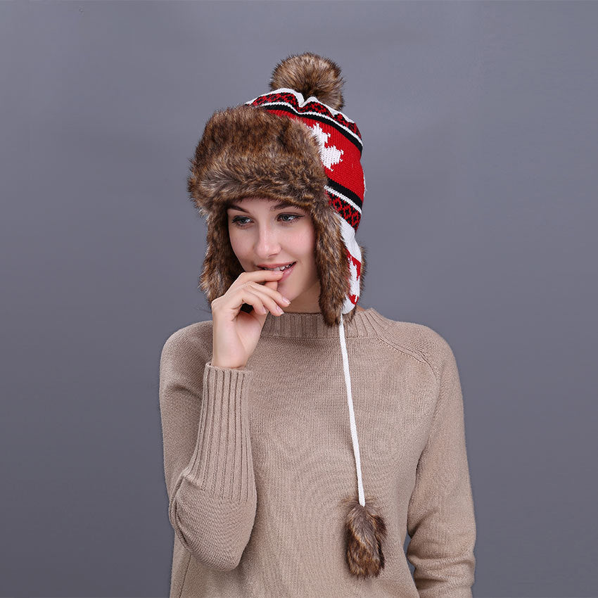 Wholesale of New Maple Leaf Ear Protection Hats for Autumn and Winter, Knitted Wool Hats