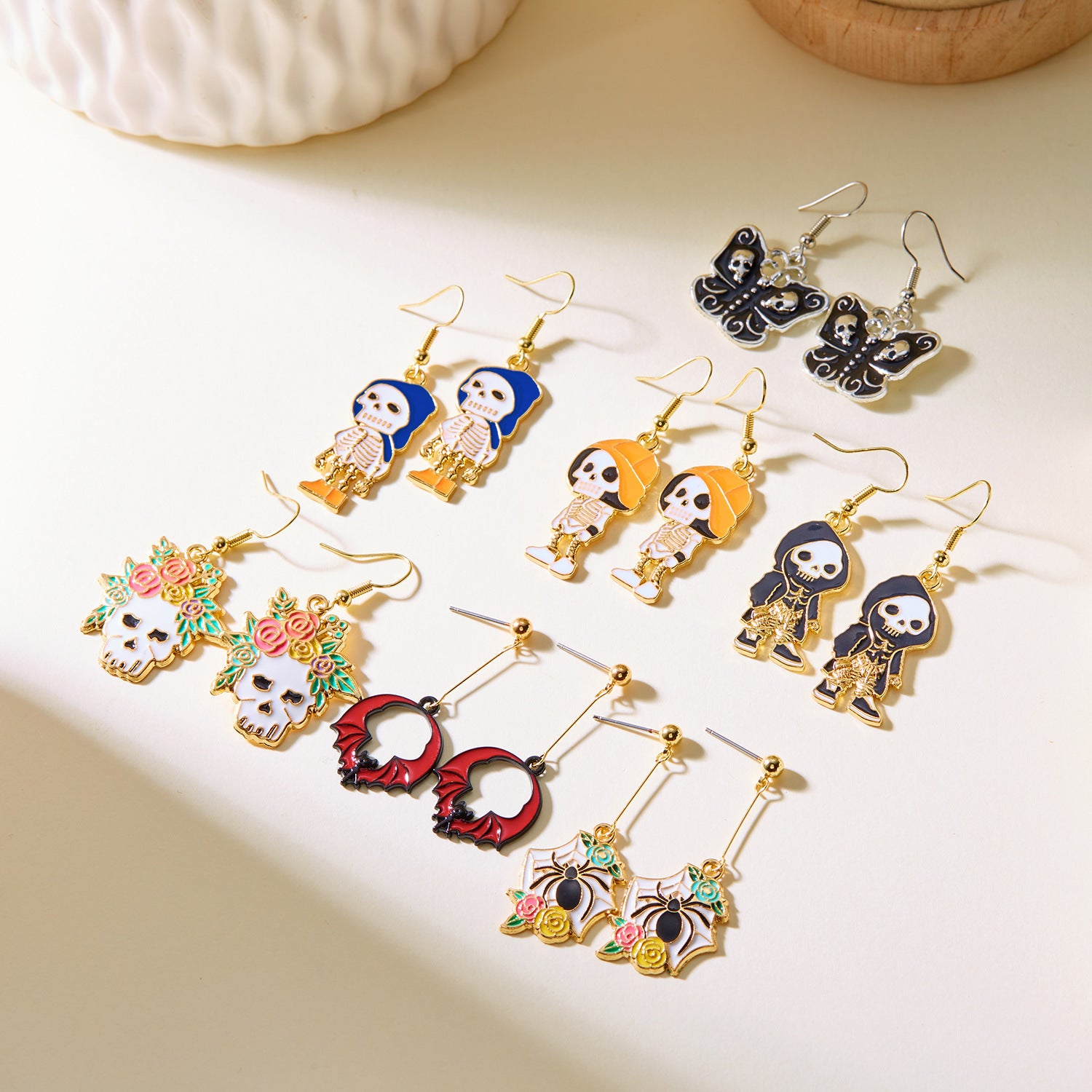 Wholesale painting oil flowers skull ear hook earrings
