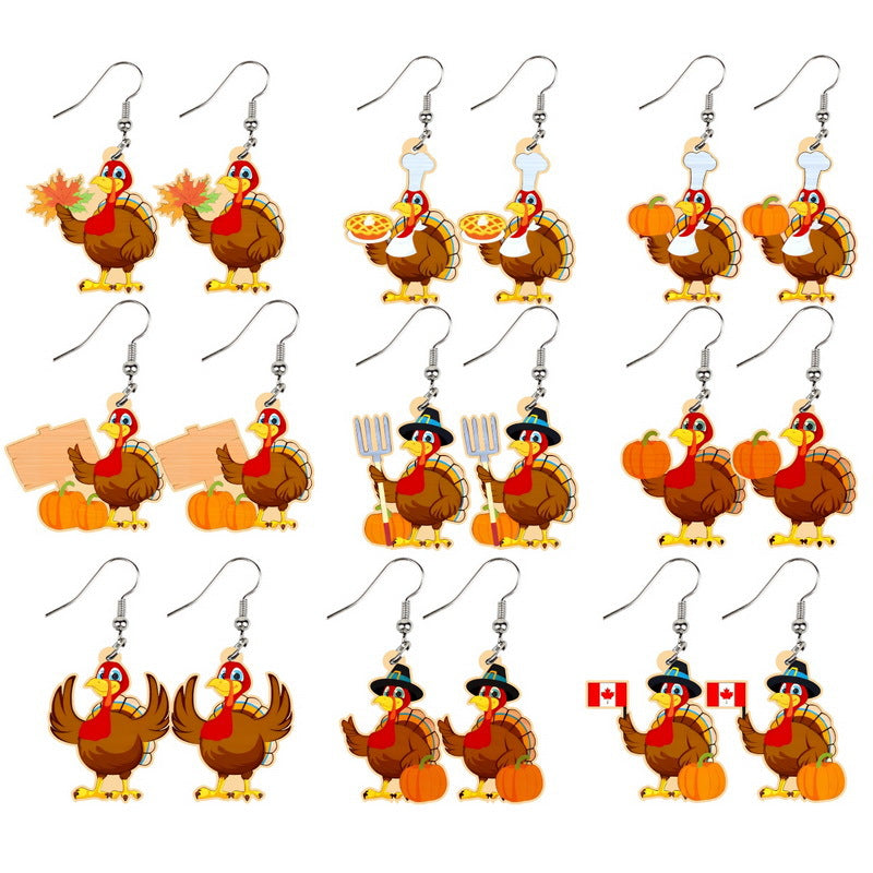 Wholesale 30pcs Thanksgiving Turkey Wooden Earrings Autumn Pizza Turkey Pumpkin Maple Leaf Chinese Restaurant Pendant