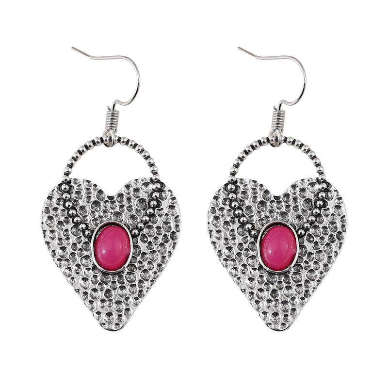 Wholesale Ancient Style Love Heart Inlaid Gem Alloy Retro Personality Simple Niche Earrings