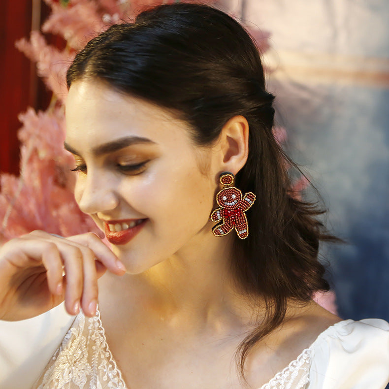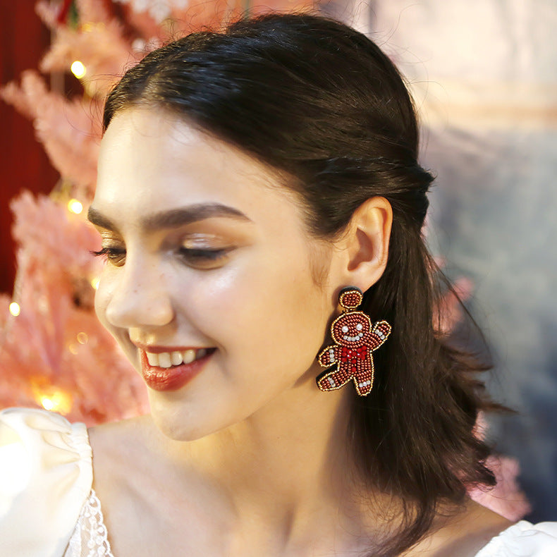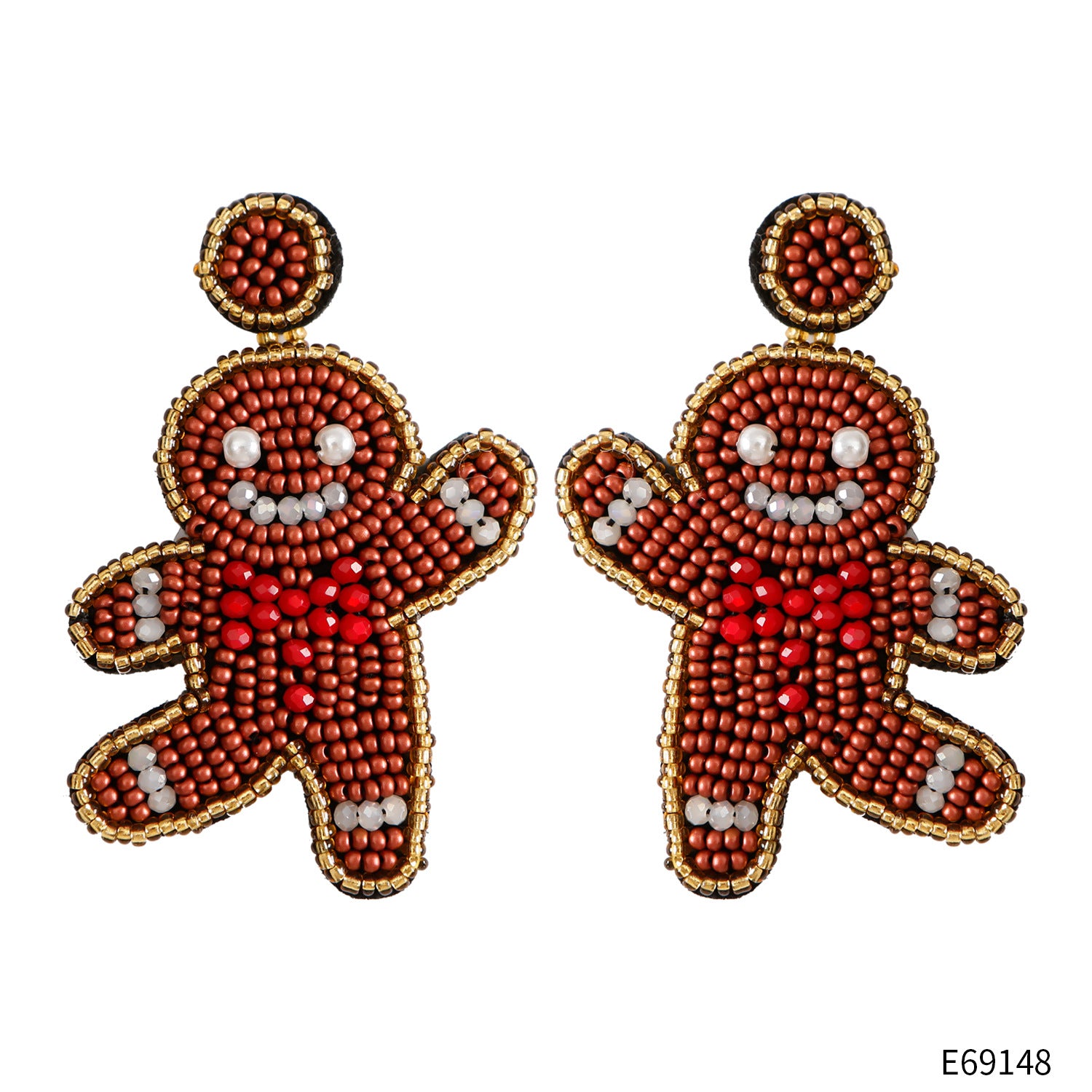 Wholesale Bohemian Hand-woven Christmas Cute Playful Rice Bead Earrings