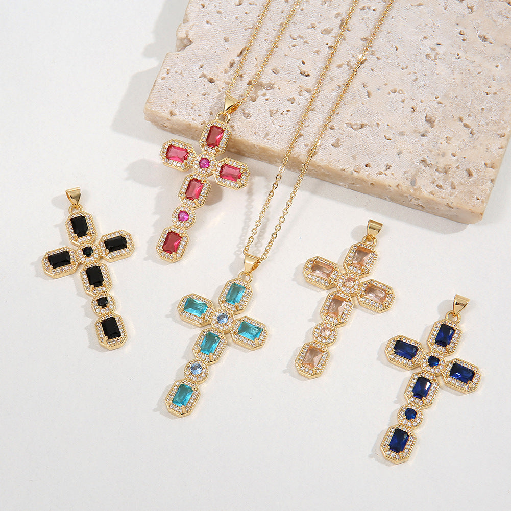Wholesale Religious Inlaid Zircon Cross Pendant Copper Necklace