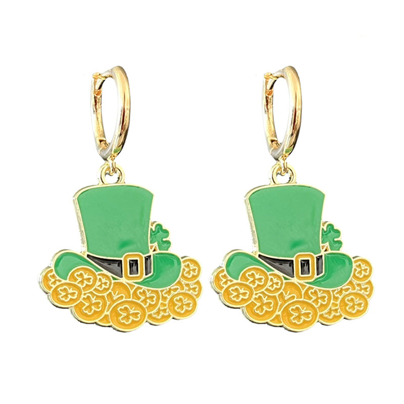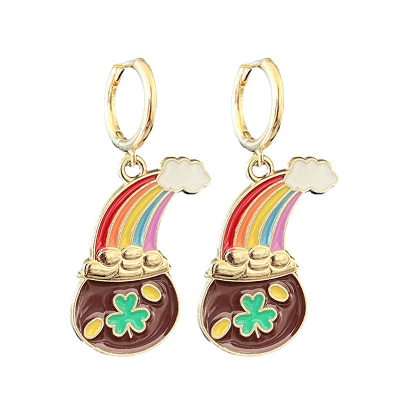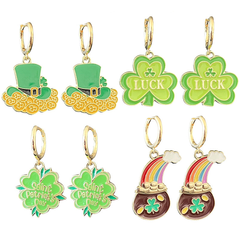 Wholesale 2pairs/pack St. Patrick' s Day Rainbow Green Clover Alloy Earrings