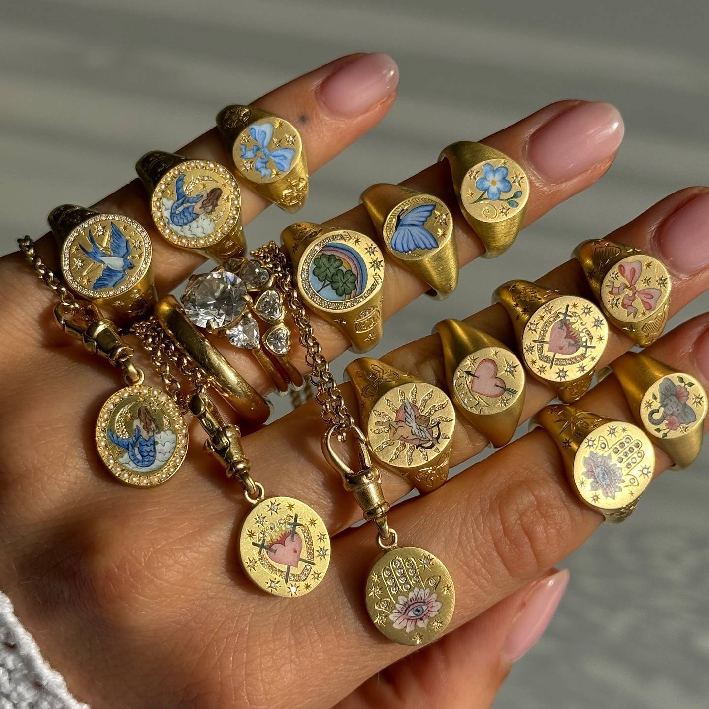 Wholesale Valentine' s Day Lion Mermaid Love Painting Stainless Steel Ring